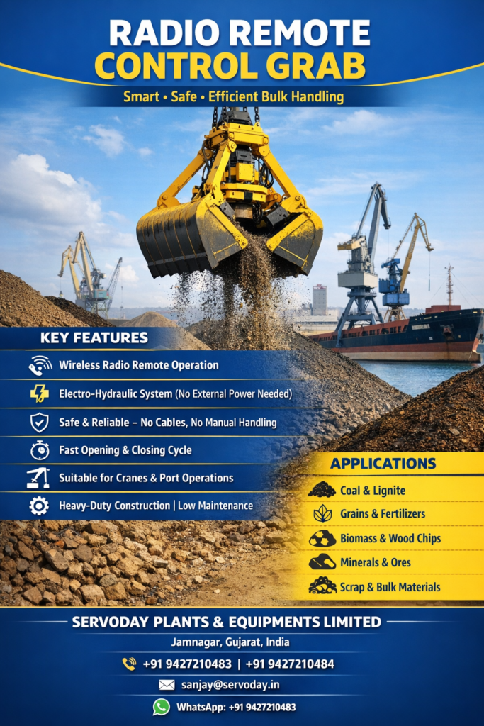 Upgrade your bulk handling operations with our Radio Remote Control Grab, designed for precision, safety, and efficiency across ports, fertilizer plants, steel industries, cement plants, and warehouses.