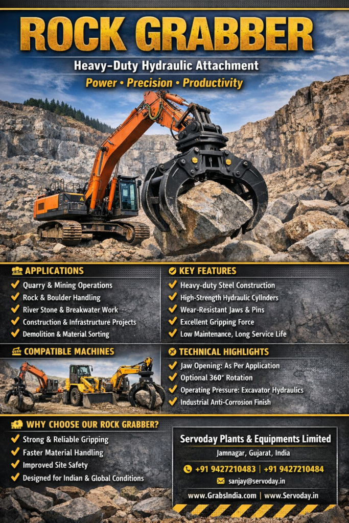 Our Rock Grabber is designed for quarries, mining, construction & river works, delivering strong grip, safety and speed on every job site.