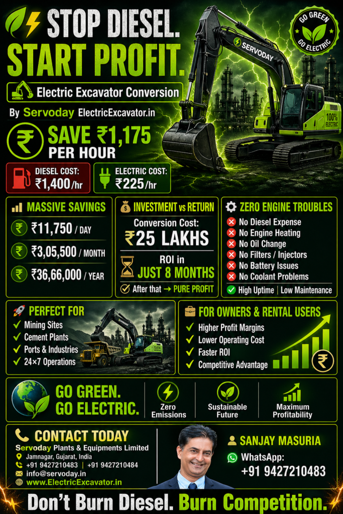 👉 Electric Excavator = 70–80% cost reduction