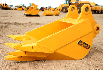 Standard bucket supplied with most excavators; fitted with teeth for penetration.