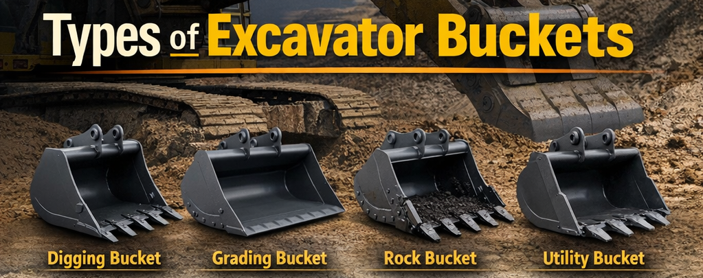 Excavator buckets are designed for specific soil conditions, materials, and job requirements. Choosing the correct bucket improves productivity, fuel efficiency, machine life, and job quality.